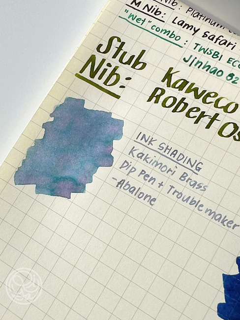 Note that the swatch of Troublemaker's Abalone on the right, which was a less saturated ink and relatively dryer one, did not bleed-through at all.